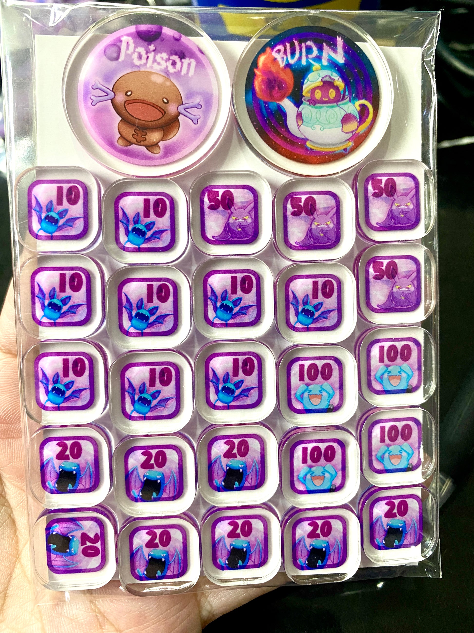 PTCG 傷害指示物 - 大口蝠 波音蝠 叉字蝠 果然翁 + 怖思壺 帕底亞烏波 狀態指示物 Damage Counter Set